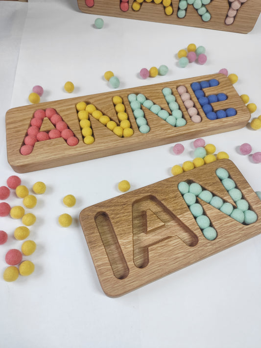 Wooden pencil holder with 10 holes for felt balls, desk organizer