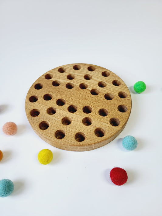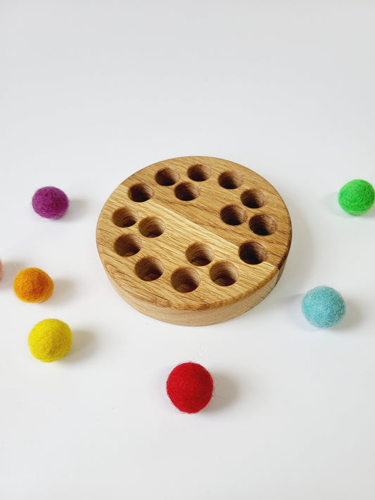 Wooden pencil holder with 7 holes for felt balls, desk organizer