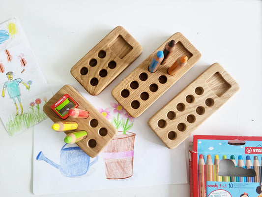 Our art supplies are designed to inspire creativity! We offer eco-friendly wooden organizers and holders for pencils, crayons, wax sticks, and more. Perfect for Waldorf and Montessori education, homeschooling, creative activities, and thoughtful gifts for kids.