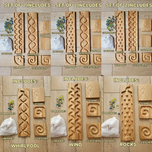 Wooden Marble Run Track Set, set of 7