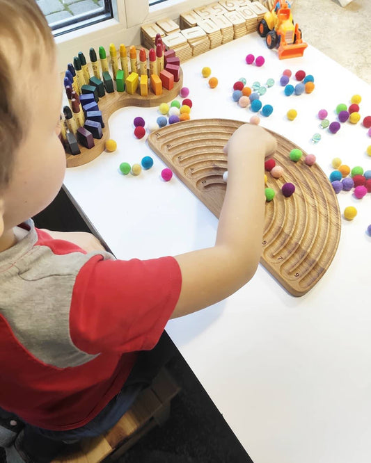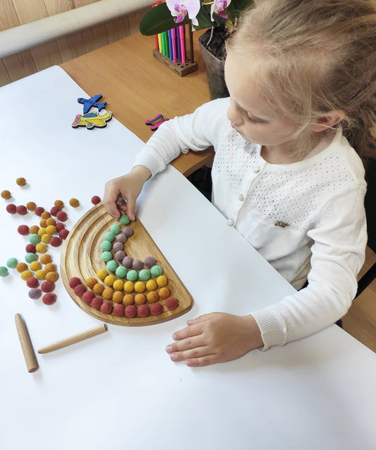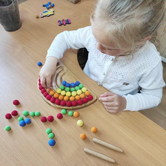 Discover our Rainbow Boards collection — beautifully crafted wooden boards designed for sensory play, pre-writing practice, and fine motor skill development. Featuring vibrant stripes and felt balls, these Montessori-inspired boards encourage hands-on learning through tracing, sorting, and creative exploration. Perfect for homeschooling, early childhood education, and open-ended play.