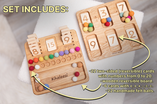Mathe-Tafel 1-20 mit Tabletts und bunten Filzkugeln | Lernspielzeug für Kinder