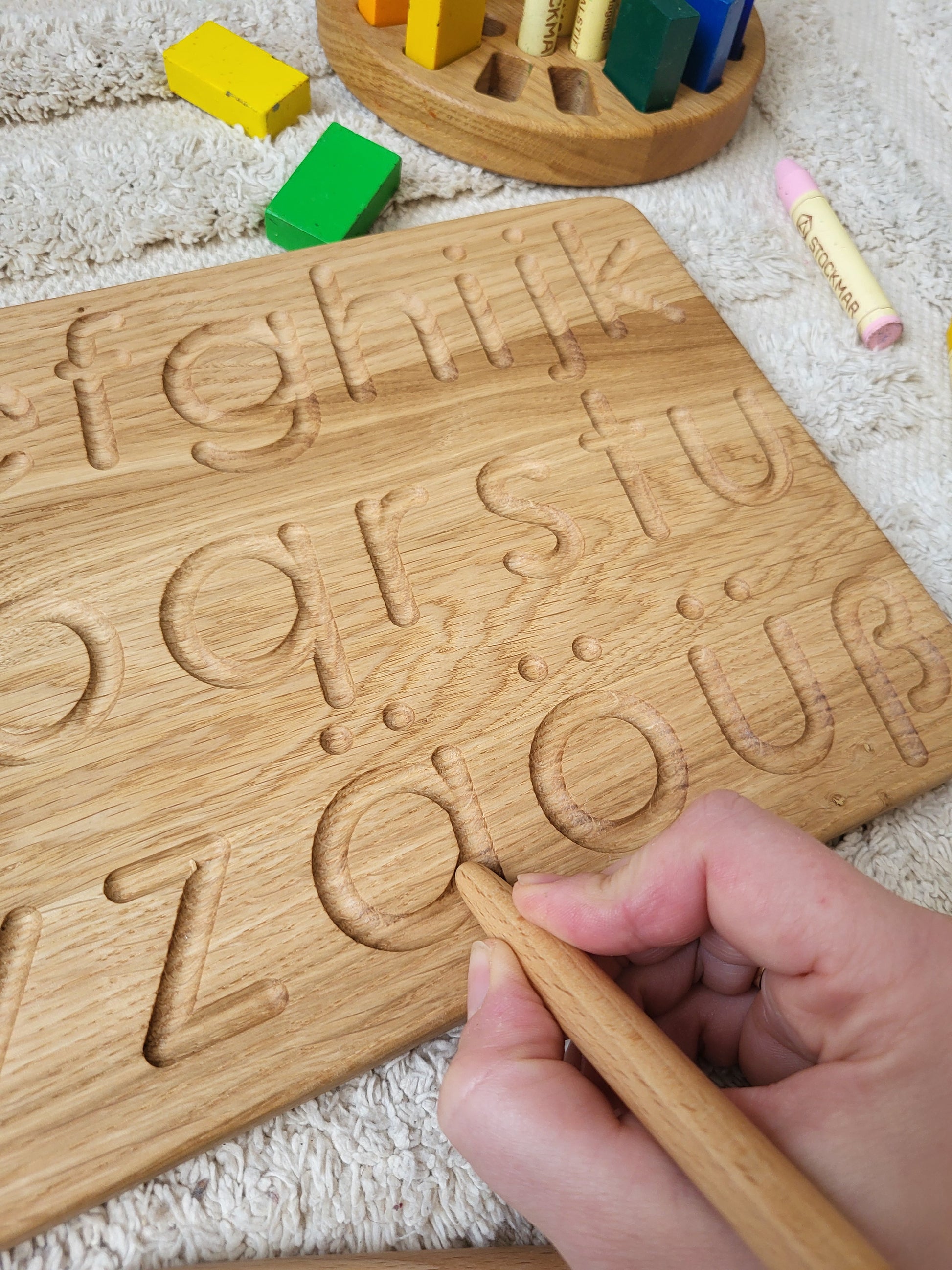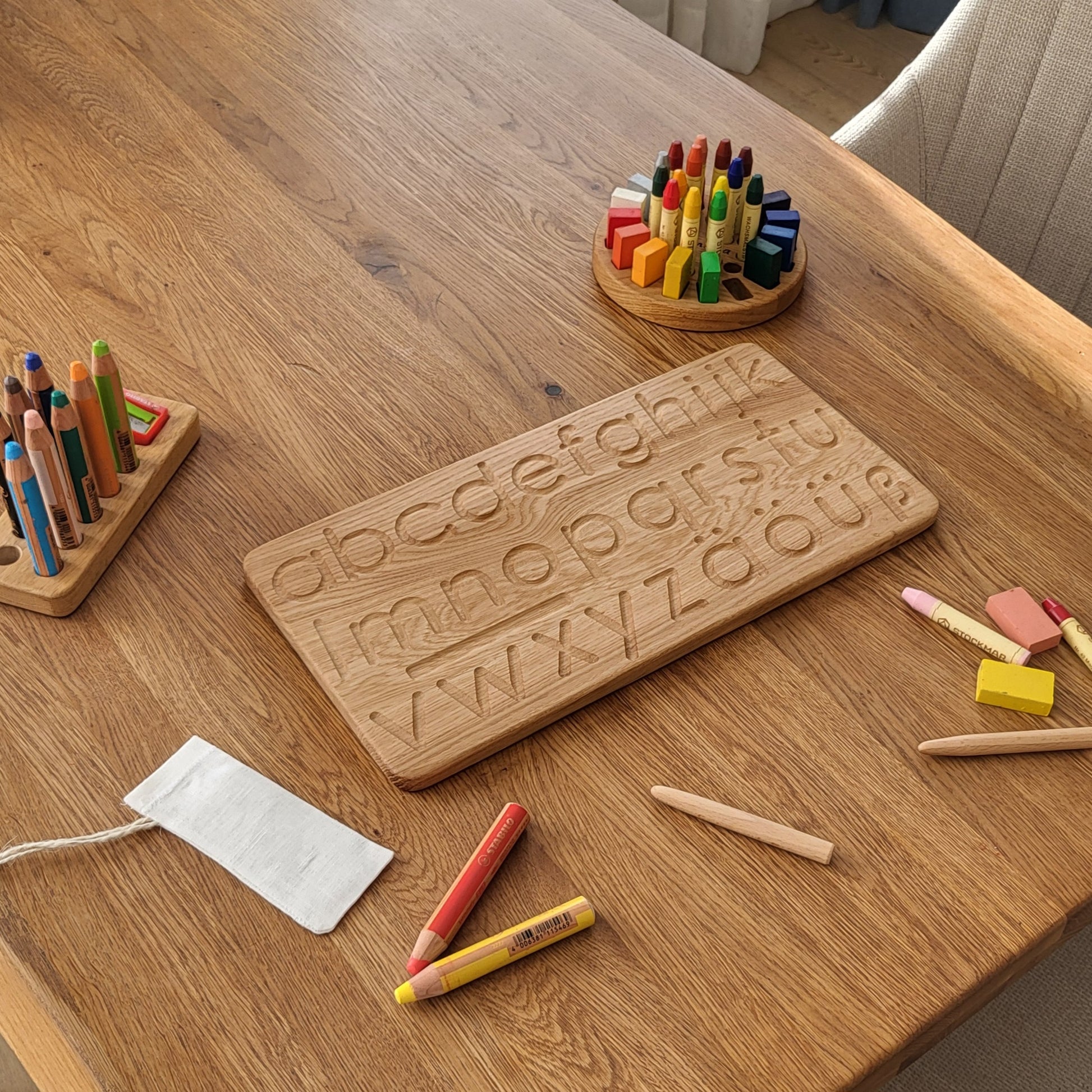 Es hilft Ihren Kindern, das Schreiben deutscher Buchstaben zu lernen. Enthält 2 Holzstäbchen in einem Leinenbeutel.