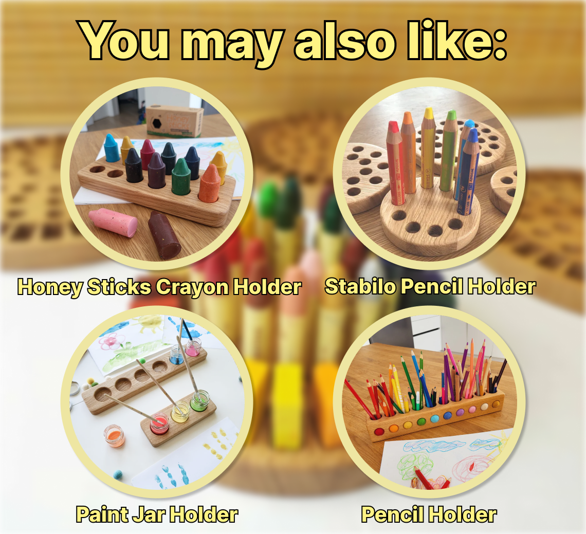 Die Löcher sind so dimensioniert, dass sie für Stabilo 3-in-1-Holzstifte geeignet sind.