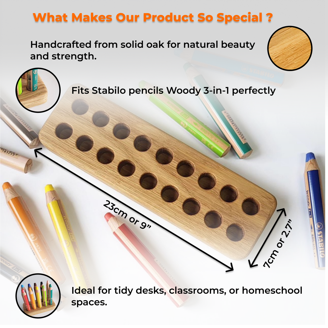 Mit diesem Stabilo 3-in-1 Stiftehalter für 18 Holzstifte behalten Sie Ihre Stifte stets ordentlich bei. Ideal für Kleinkinder, Montessori-Materialien, Homeschooling und künstlerische Aktivitäten. Ein perfektes Geschenk für junge Künstler und zur Organisation des Schreibtisches!