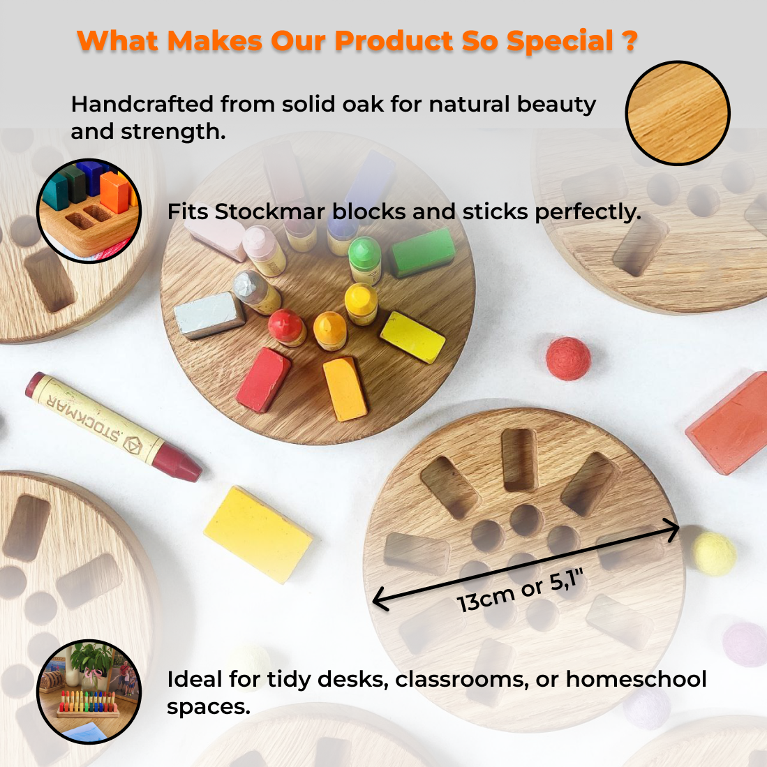 Dieser runde Stiftehalter aus Holz im Waldorf-Stil bietet Platz für 8 Stockmar-Blöcke und -Stäbchen. Ideal für Montessori-Spielzeug, Homeschooling und kreative Kunstprojekte. Ein liebevolles Geschenk für Kinder!