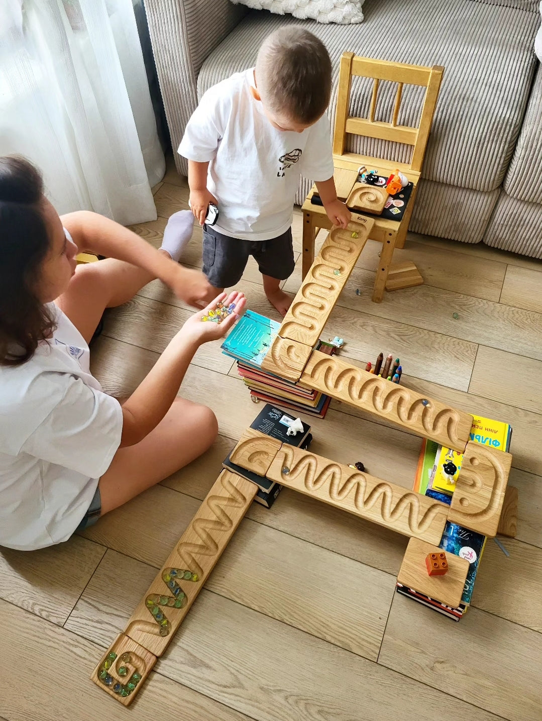 Experience the thrill of wooden craftsmanship with our marble run track. This intricately designed course promises endless fun and excitement for all ages. Build, race, and watch in awe as marbles zip through twists, turns, and loops. Elevate playtime with our wooden marble run!