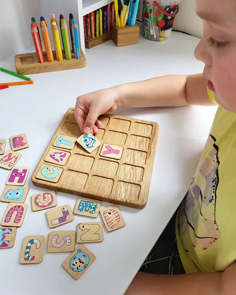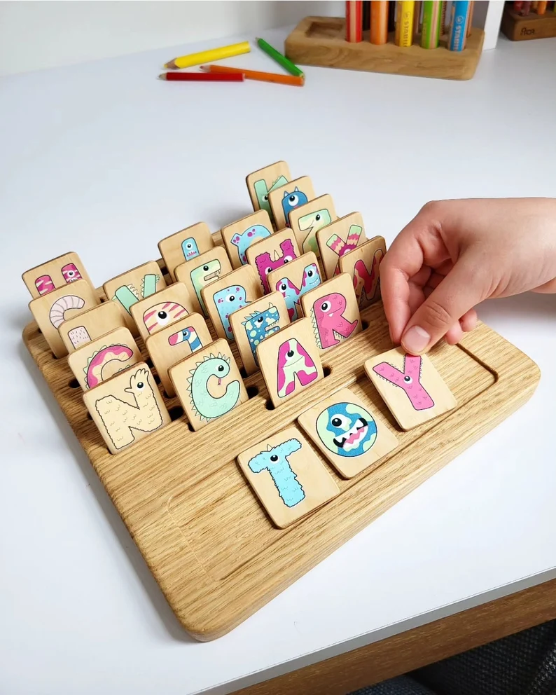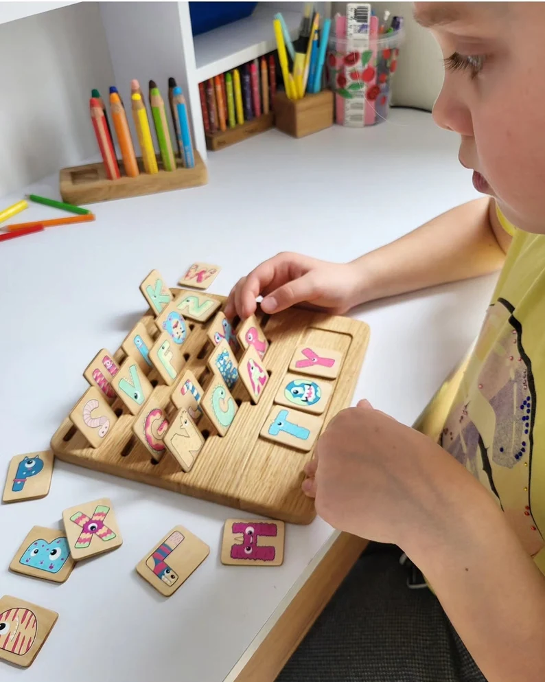 You can play with kids and create words from letters. We recommend order with 2 sets, because some words have repeating letters.
