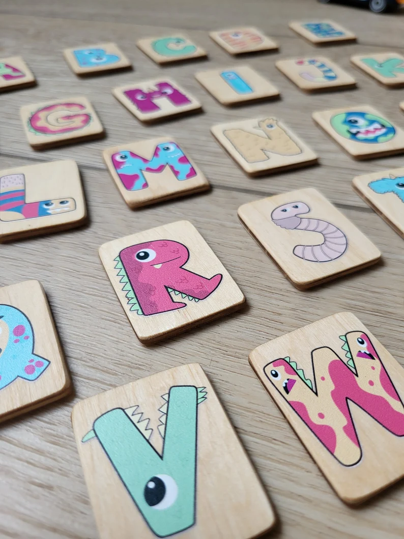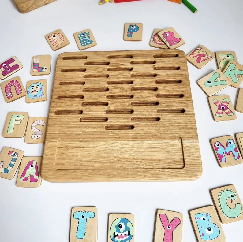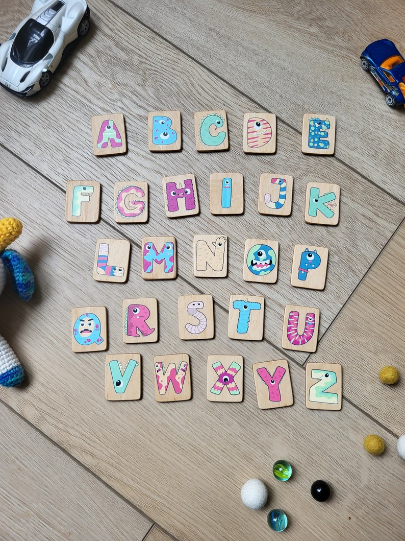 Engage young learners with this Montessori English alphabet reversible board and fun monsters letter cards. Perfect for early literacy, letter recognition, and creative learning activities.
