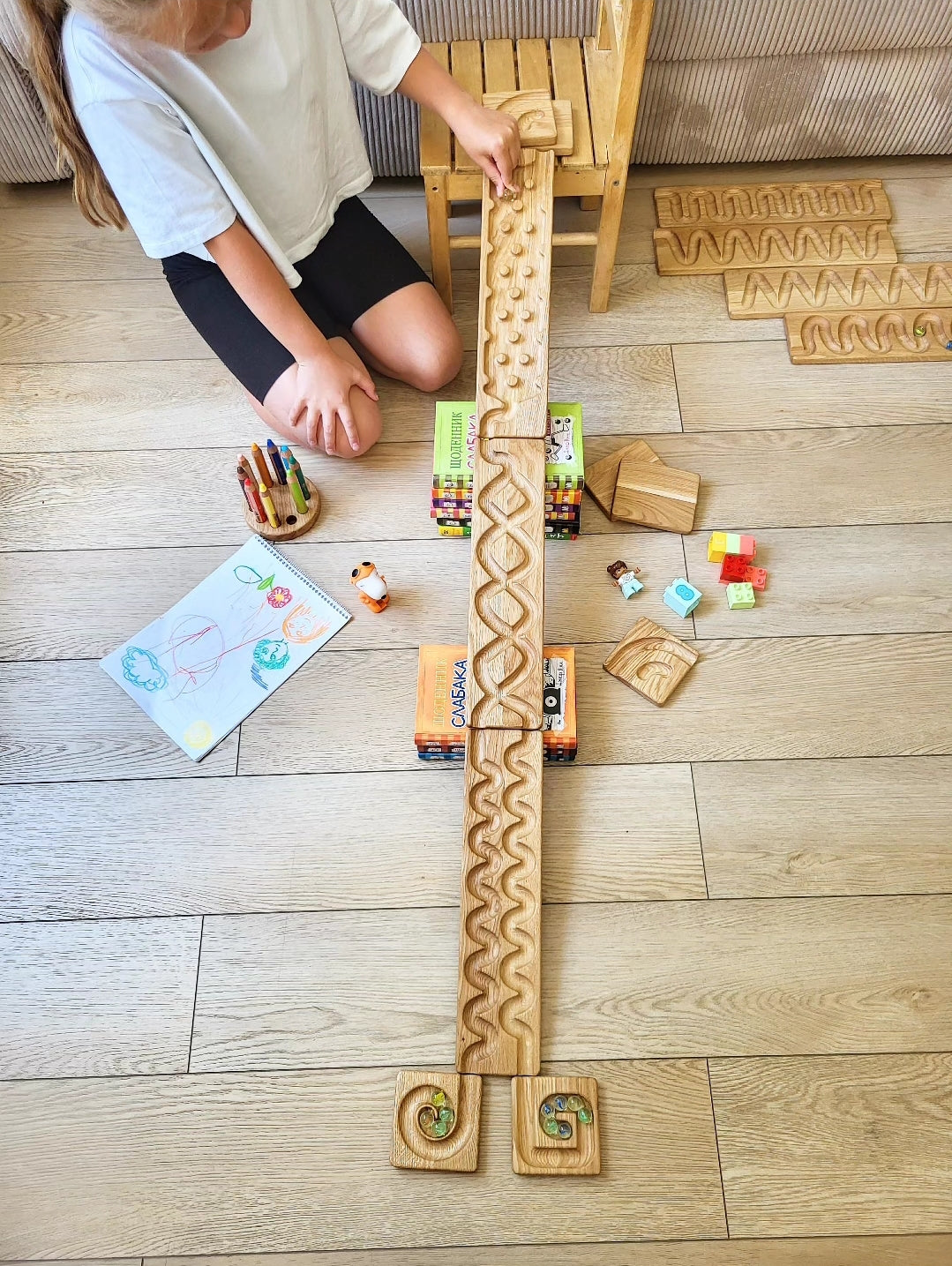 Experience the thrill of wooden craftsmanship with our marble run track. This intricately designed course promises endless fun and excitement for all ages. Build, race, and watch in awe as marbles zip through twists, turns, and loops. Elevate playtime with our wooden marble run!